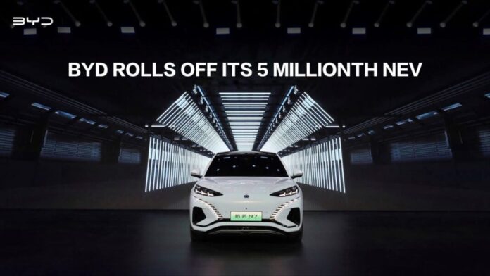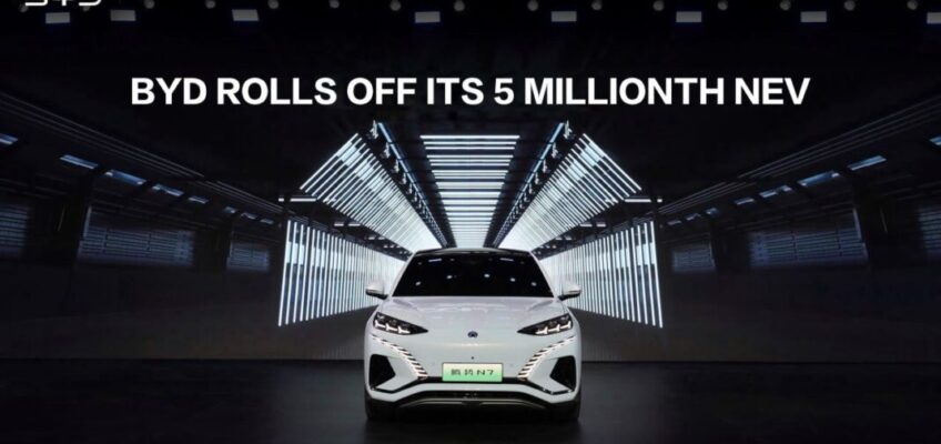 BYD, el fabricante de autos Chinos y especialista en coches 100% eléctricos y uno de los mayores fabricantes mundiales de vehículos de nueva energía, ha puesto en circulación su vehículo de nueva energía (NEV) número 5 millones, un DENZA N7 que salió de las líneas de producción el 9 de agosto.