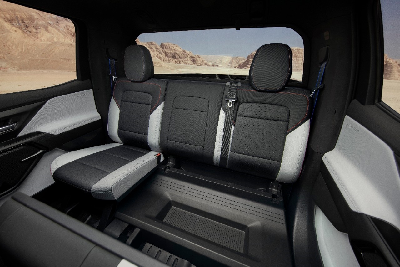 Una segunda fila de asientos 40/60 ofrece cuatro configuraciones que permiten al conductor transportar equipo y acomodar a la vez a un pasajero en la segunda fila. Con la integración de la puerta trasera Multi-Flex disponible, la Silverado EV RST permite hasta 10 pies y 10 pulgadas de piso de carga y almacenamiento.