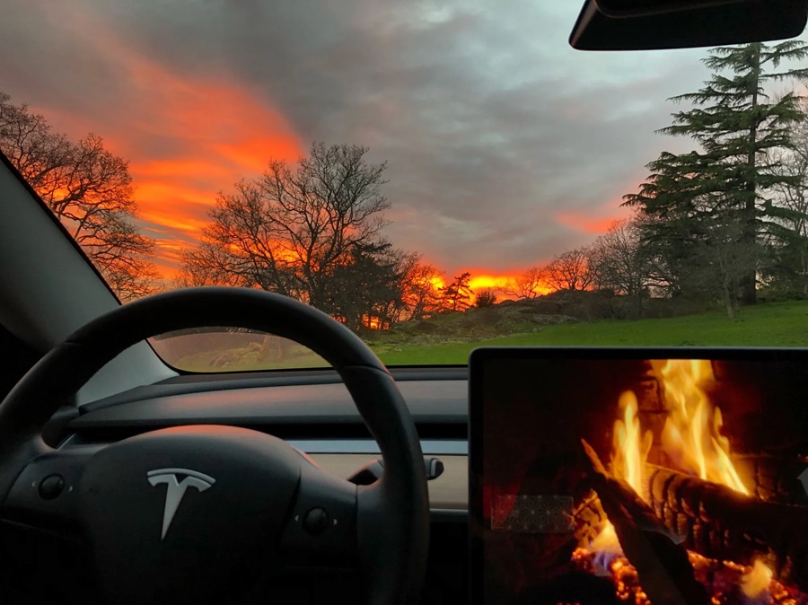 Tesla ha convertido el concepto de auto en una consola de entretenimiento con ruedas. Uno de sus trucos más virales es el “Modo Romance”: activa una chimenea virtual en la pantalla central mientras suena música suave y el aire acondicionado se ajusta para crear ambiente.