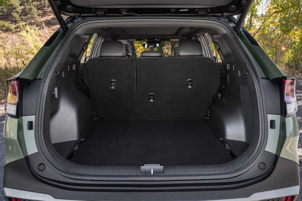 El interior tiene asientos para cinco y una capacidad de carga de 39.6 pies cúbicos, que es de 8.9 pies cúbicos en comparación con el espacio de carga del Kia Sportage del modelo 2022.
