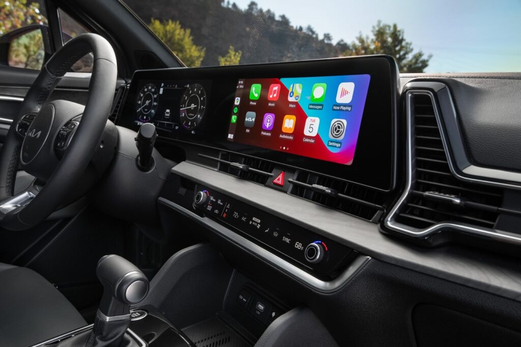 El diseño del tablero se inspira mucho en el sedán Kia K5, con una configuración de pantalla dividida con una unidad de 12,3 pulgadas para la pantalla de indicador digital y otras 12,3 pulgadas para el sistema de infoentretenimiento.