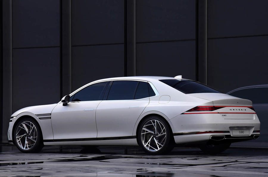 En términos de su diseño, el G90 se parece mucho al G80 de tamaño mediano, pero con notablemente más espacio entre sus ruedas, en línea con su facturación de lujo, y una serie de señales de diseño a medida.
