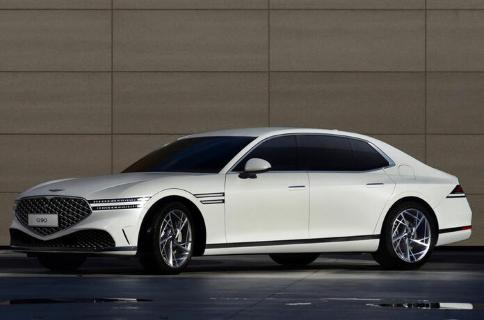 Genesis reveló el exterior de su nuevo sedan de lujo G90, que rivalizará con el Lexus LS, Audi A8, BMW Serie 7 y Mercedes-Benz Clase S a nivel mundial cuando salga a la venta el próximo año.