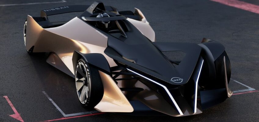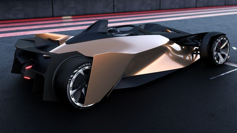 En la parte delantera, Nissan incorporó la forma de rejilla en V que se ve en sus autos de carretera a través de franjas iluminadas que van desde el morro hasta el bifurcador delantero.