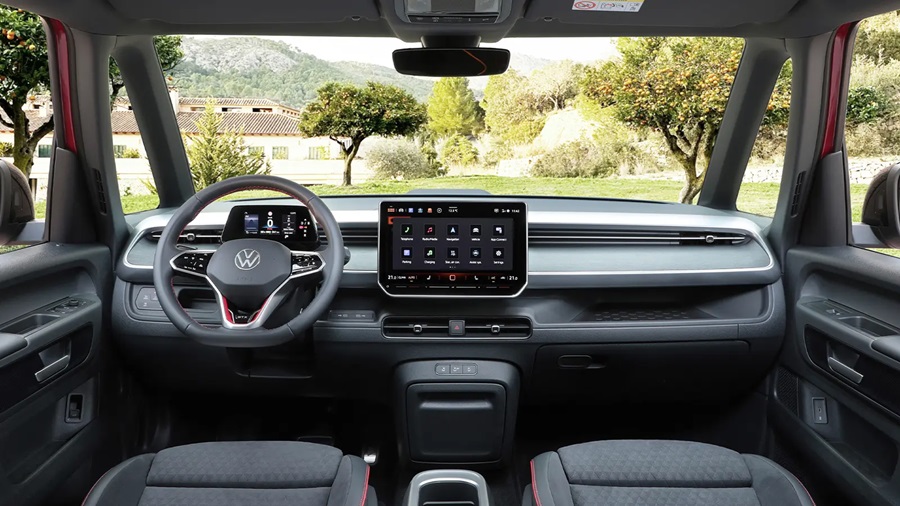El ID. Buzz está equipado con tecnología avanzada que garantiza una experiencia conectada. La cabina incluye dos pantallas: un ID. Cockpit digital de 5,3 pulgadas y una pantalla central de infoentretenimiento de 12,9 pulgadas. Esta última permite acceder a funciones como navegación, medios y control del vehículo mediante comandos táctiles o por voz.